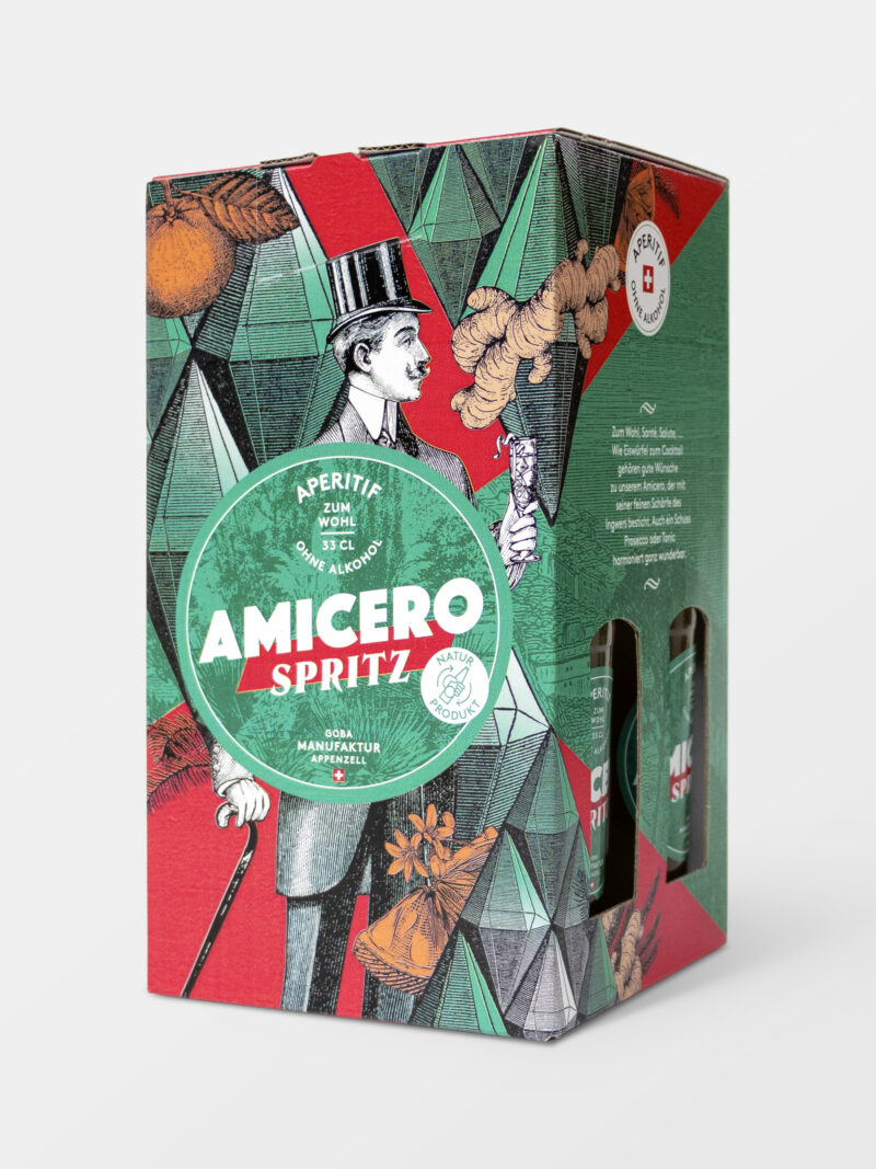 Gestaltung: Die Übernahme einzelner Gestaltungselemente stellt einen losen Zusammenhang zu den Bitters und Likören her.